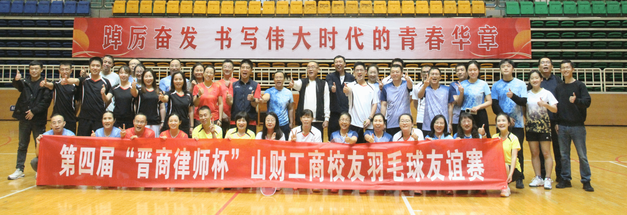 金秋九月,硕果飘香。9月27日下午,由我院校友会主办、山西晋商律师事务所冠名支持的第四届“晋商律师杯”山财工商校友羽毛球友谊赛,在坞城校区体育馆圆满落幕。太原师范学院教师常朦朦担任赛事主持,赛事吸引来自学院教职工、晋商律所、晋城一中太原校友会及万马公司等六支队伍、三十六名选手踊跃参赛。