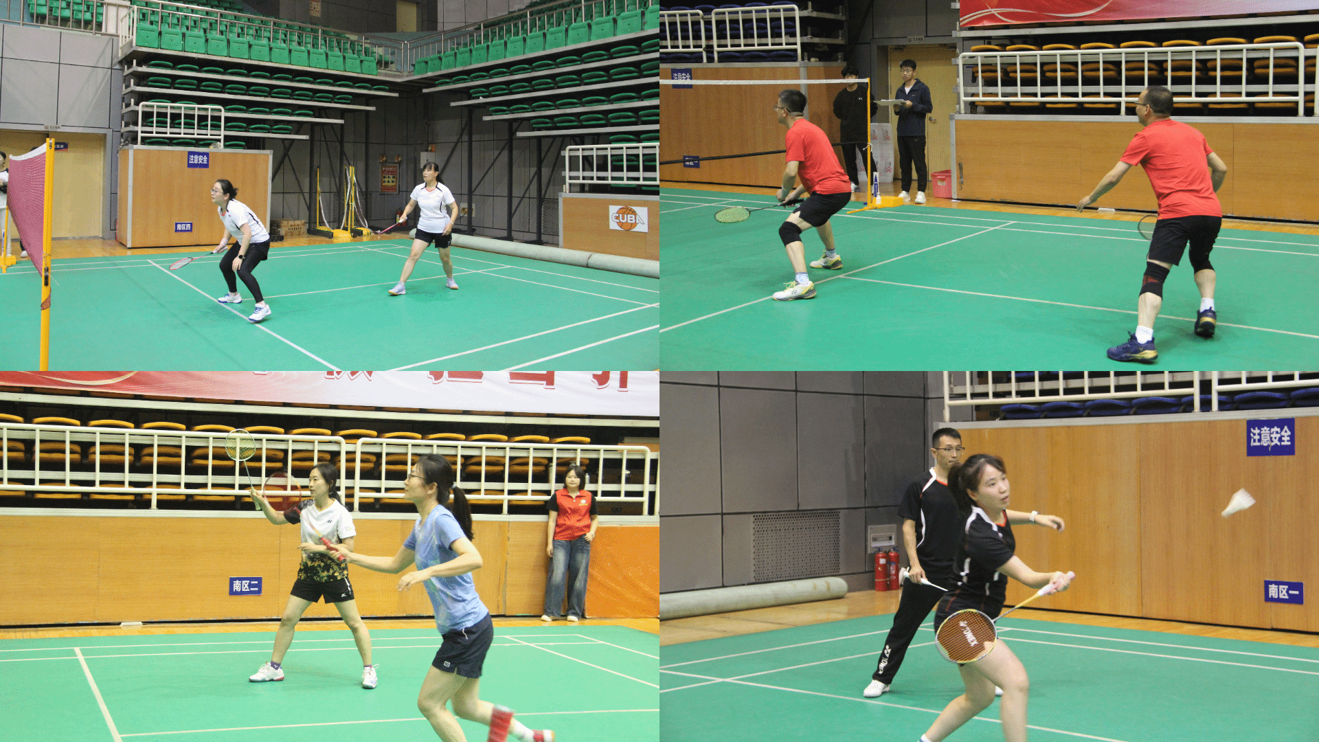 随着哨声响起,赛场瞬间进入激烈氛围。选手们精神饱满、各展所长:精准的高远球拉开战局,迅猛的扣杀点燃激情,灵巧的吊球尽显智慧,各类技法轮番上演,每一次攻防转换都引来场下观众的喝彩与助威,现场气氛持续升温。