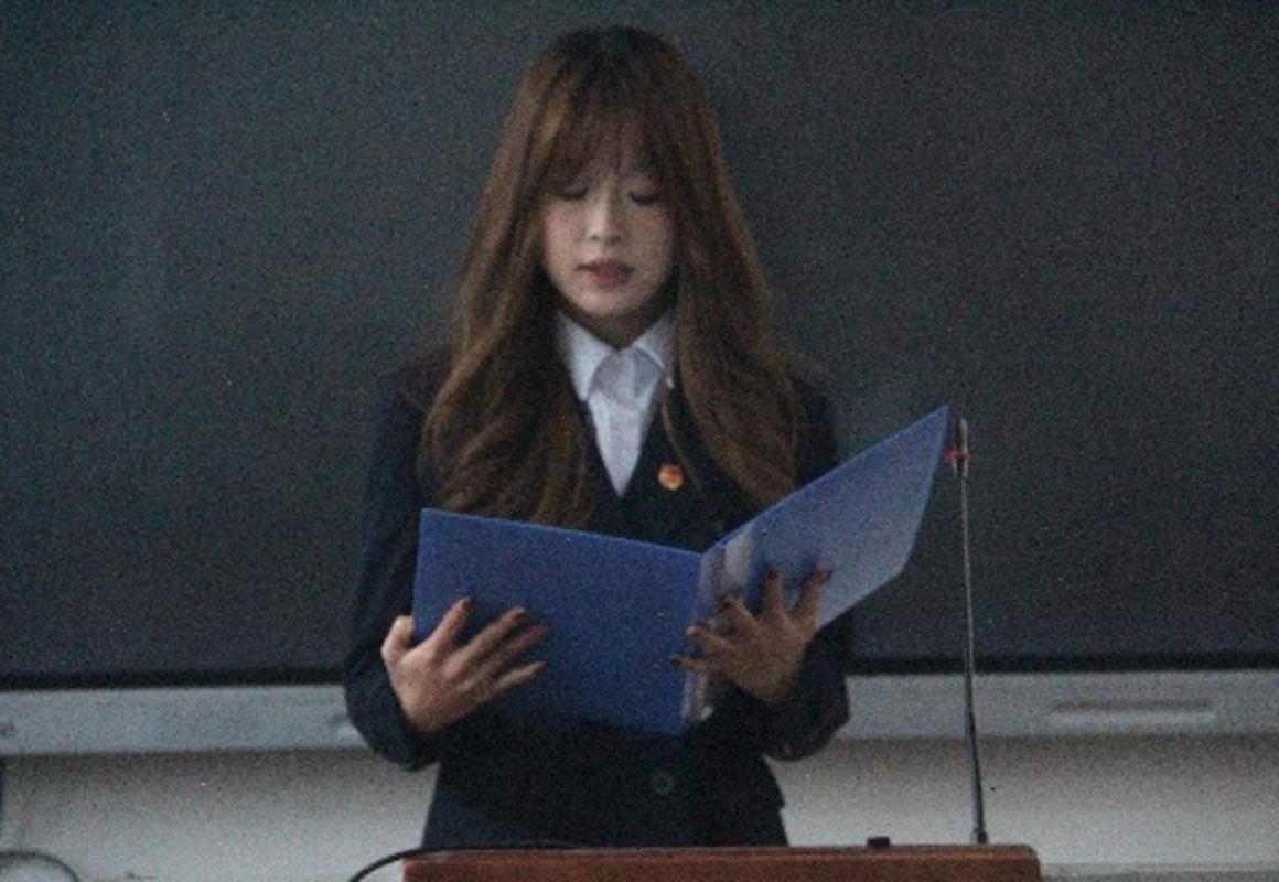 在全体参会成员齐唱中国共青团团歌中,团学大会正式拉开序幕。第二十四届团委副书记余科露薇对去年的团委工作进行总结报告,希望新一届成员能坚守服务初心,开创工作新局面;第二十四届团委执行主席杨佳怡在工作总结中希望下一届成员牢记担当,砥砺前行。