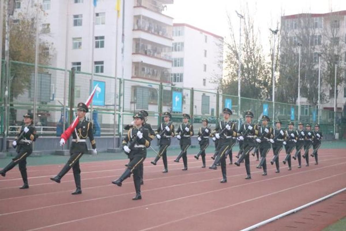 升旗仪式伊始,昂首挺胸的国旗队队员迈着铿锵步伐入场。执旗手稳稳擎起国旗至旗杆下,展旗、升旗动作规范利落,伴随着雄壮的《义勇军进行曲》,五星红旗冉冉升起、猎猎飘扬,全体师生行注目礼,现场尽显庄严肃穆。
