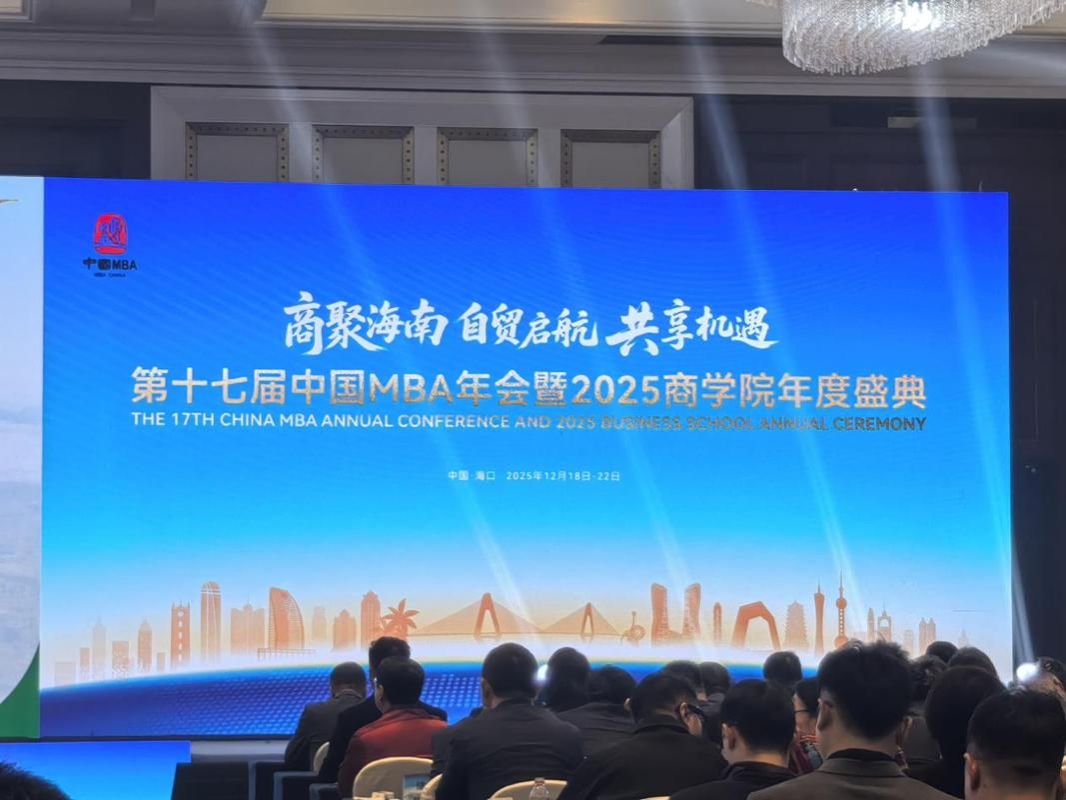 12月19日至21日,由海南大学主办的第十七届中国MBA年会暨2025商学院年度盛典在海南海口成功举办。此次年会以“商聚海南、自贸启航、共享机遇”为主题,来自国内外200余所高校的积极参与,1100余名商学院院长、书记、MBA学生及校友代表齐聚一堂,共襄盛举。我院周志刚副书记、王治老师带领在校MBA学生代表和校友代表一同参加了此次会议。我院荣获第十七届中国MBA“十佳创新学院”。