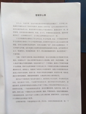 我院学生学习《管理学》心得体会