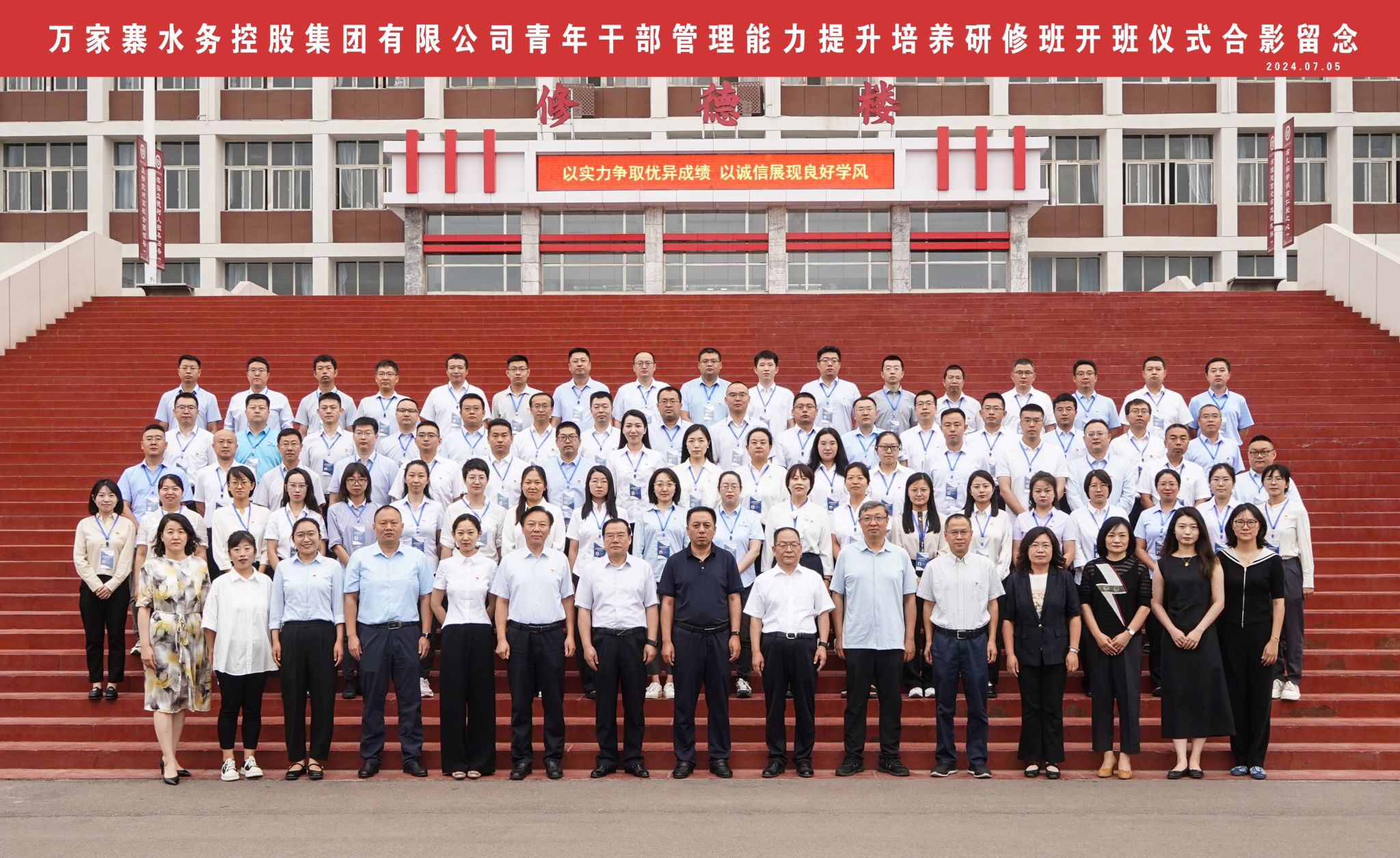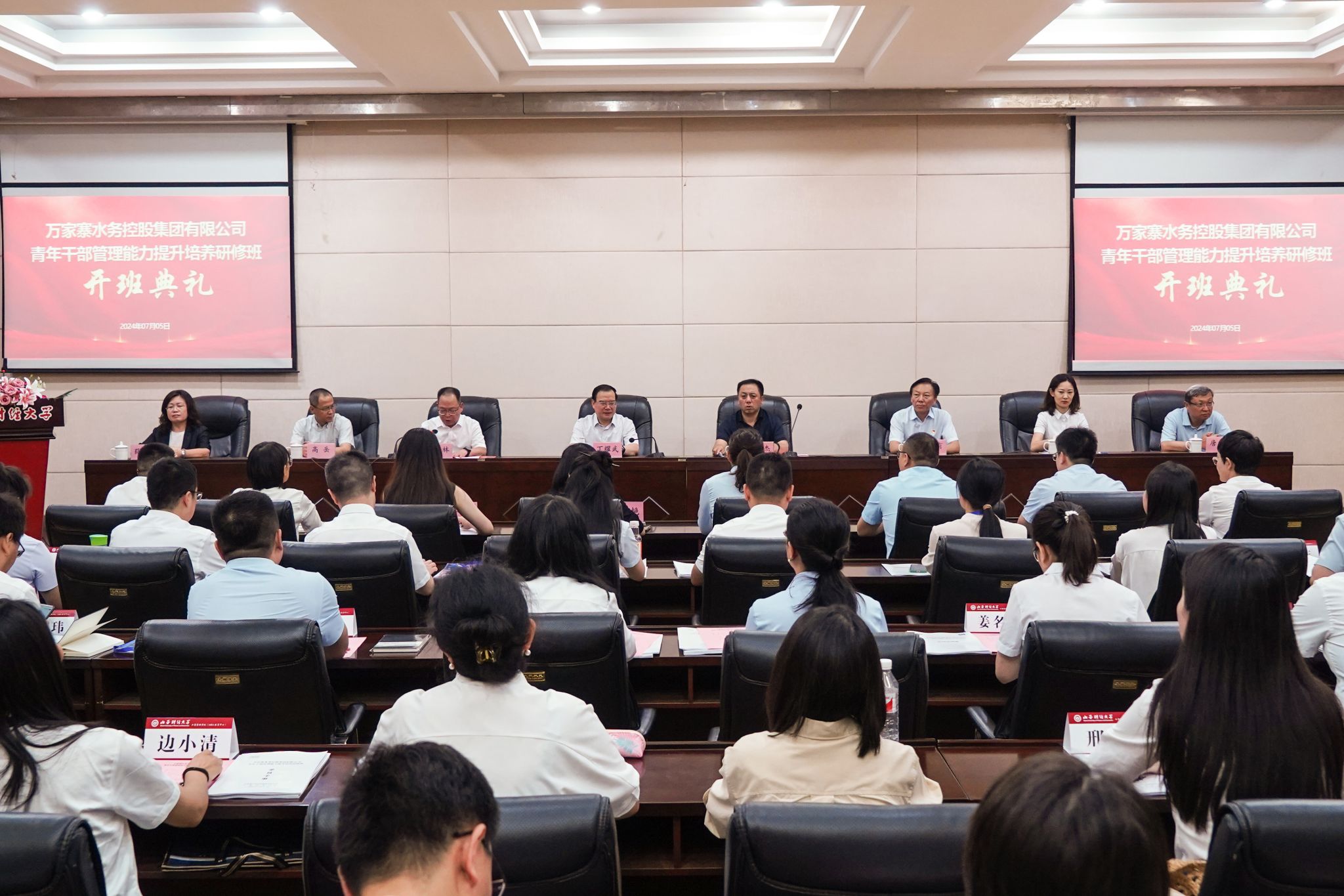 7月5日上午,由我校7790cnm必发集团承办的万家寨水务控股集团有限公司(以下简称“万家寨水控集团”)青年干部管理能力提升培养研修班开班典礼,在修德楼一层报告厅举行。万家寨水控集团党委副书记、副董事长、总经理兰康杰、集团有关部门领导和研修班全体学员,校党委书记丁耀武及7790cnm必发集团领导等90余人参加会议。会议由7790cnm必发集团院长卫虎林主持。