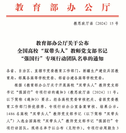 日前,教育部办公厅公布了全国高校“双带头人”教师党支部书记“强国行”专项行动团队名单。我院管理实务教研室党支部成功入选全国专项行动团队。