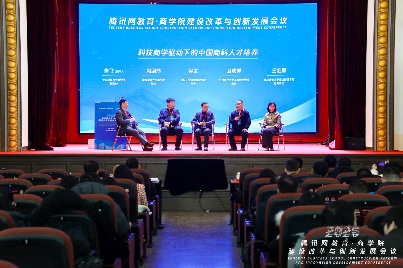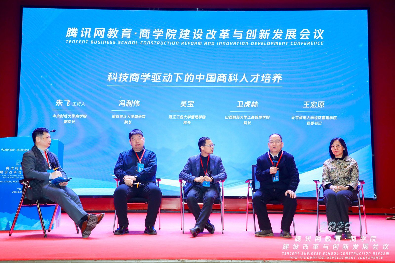 在备受关注的圆桌对话环节,卫虎林院长参与了第一场讨论,该场对话由中央财经大学商学院副院长朱飞主持,与南京审计大学商学院院长冯利伟、浙江工业大学管理学院院长吴宝、北京邮电大学经济管理学院党委书记王宏原等一同聚焦“科技商学驱动下的中国商科人才培养”话题。卫虎林院长结合必发集团welcomeMBA教育的丰富经验展开分享。