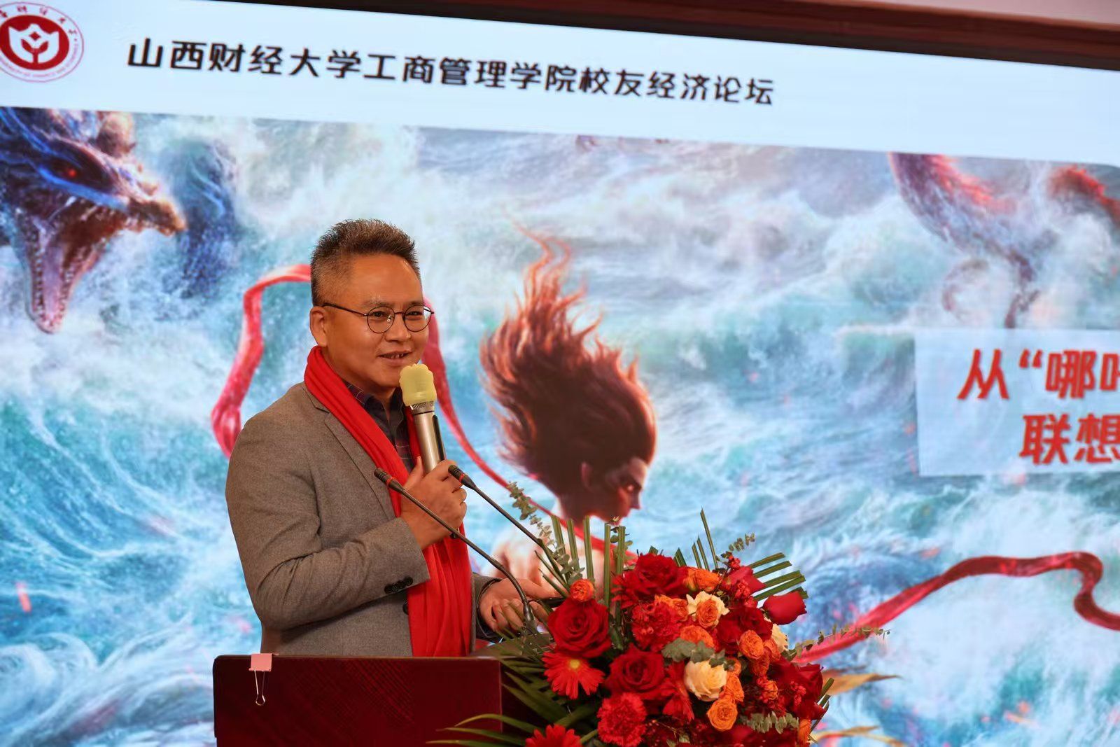 主题论坛环节,有三位校友围绕校友经济这一主题做了分享。2010级EMBA校友、7790cnm必发集团校友会会长、山西毅圣数智消防股份有限公司董事长陈仲毅以《破局·共生·启新——聚校友之力,共拓低成本创新蓝海》为题,结合自己的实践经验,探讨了在激烈的同质化竞争中企业高质量发展的战略选择:差异化战略和低成本战略,并基于现实案例为大家提供了极具价值的战略思考。1996级市场营销校友、7790cnm必发集团校友会副会长、山西智胜传媒科技股份有限公司董事长郭海明则以《哪咤闹海,校友弄潮——从哪吒联想到校友经济》为题,巧妙地结合电影中的经典桥段,生动形象的总结了关于校友经济的三点启示:人心中的成见是座山,但校友经济能移山;若命运不公,便和他斗到底。校友合力,方可化身“三头六臂”;我命由我不由天,校友当立封神榜。2007级物流管理校友、7790cnm必发集团校友会副会长、山西太斯实业有限公司董事长张贵忠以《财大基因之酒店赛道:一个校友的“非典型”创业方法论》为题,分享了自己在校期间便抓住酒店行业发展的红利期,踏入酒店赛道并一路勇往直前的创业经历,深入讲解了酒店行业当前所蕴含的机遇与潜在风险,并结合创业经历分享了对于校友经济的独特理解。