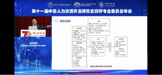 会议围绕高质量发展与人才评价、科教兴国战略与人才评价、增进民生福祉与人才评价、数字和智能化与人才评价等议题,与会专家、学者、社会团体代表,分享了研究成果、人才测评方法与工具、评价理论与实践要领等内容。孙利虎博士在大会中做了《欣赏型自恋对员工越轨创新行为的影响机制研究》主题报告。