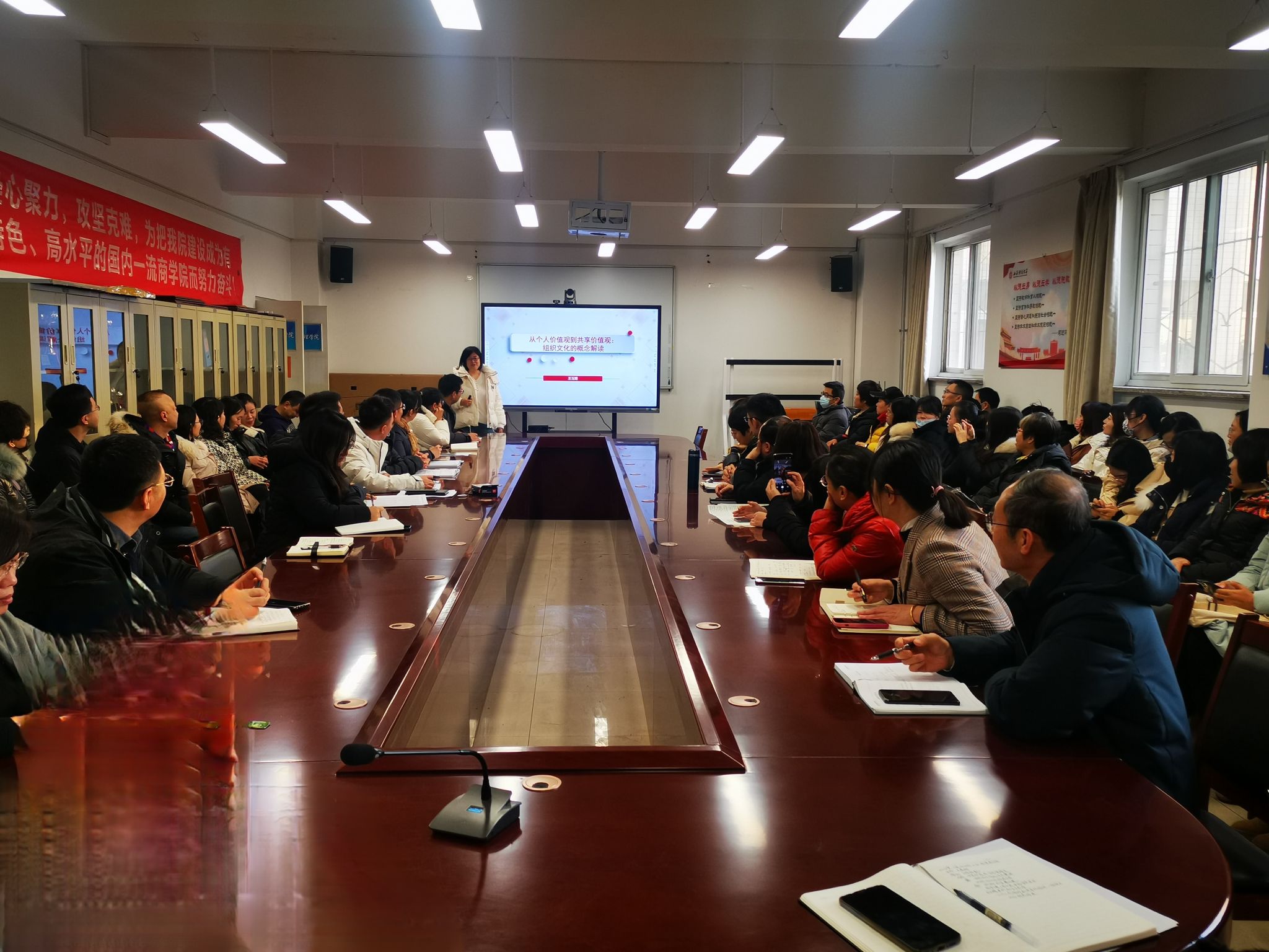 为推进课堂教学模式改革,促进教学经验交流,发挥优秀教师示范引领作用,12月28日上午,我院在学院会议室举行了优秀教师课堂教学示范课观摩活动。示范课由中国高校财经慕课联盟“管理学”同课异构课程思政教学竞赛二等奖获得者王玉娟博士主讲,学院领导班子和全体教师参加。