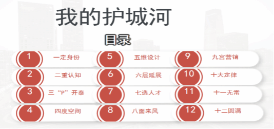 王小强以如何应对未来为引,提出一个人和一个企业,只有把自己的护城河做好,才能更好应对千变万化的时代。根据个人的职业经验和对市场的洞察,结合生活中的情景将自身总结的营销哲学凝结成十二个部分,由浅及深地分享给同学们。