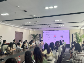 首先,同学们在综合部王越的带领下,参观了水木年华位于智慧港16楼的办公场所。王越详细介绍了公司的创业历程、企业文化、业务范围、团队构成以及各个团队的工作职责和工作内容。每个团队的核心成员也分别就各自的职能领域进行了细致地讲解,让同学们对企业内部整体运作有了一个更为直观的了解。