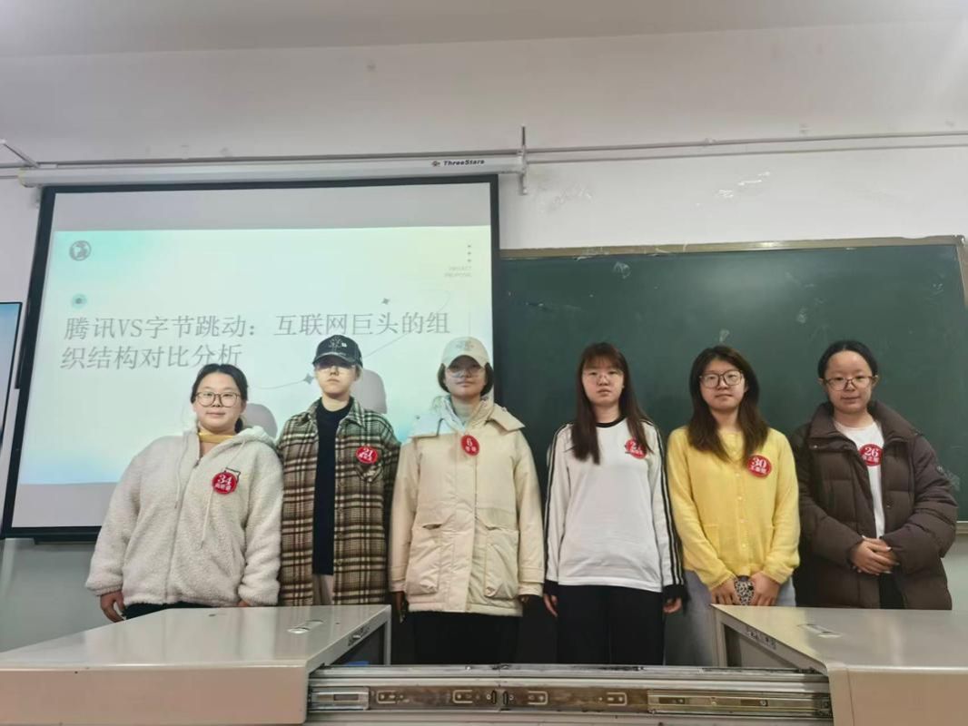 11月19日,课程组举行了隆重的颁奖仪式。经过激烈角逐,第四组凭借对腾讯与字节跳动组织结构的深入分析,以总分93.37分荣获最佳小组。杨雅茗(第四组)、余杨(第六组)两位同学被评为“优秀选手”。此外,还对尚昕睿、王怡泽两位主持人的突出表现予以表彰。