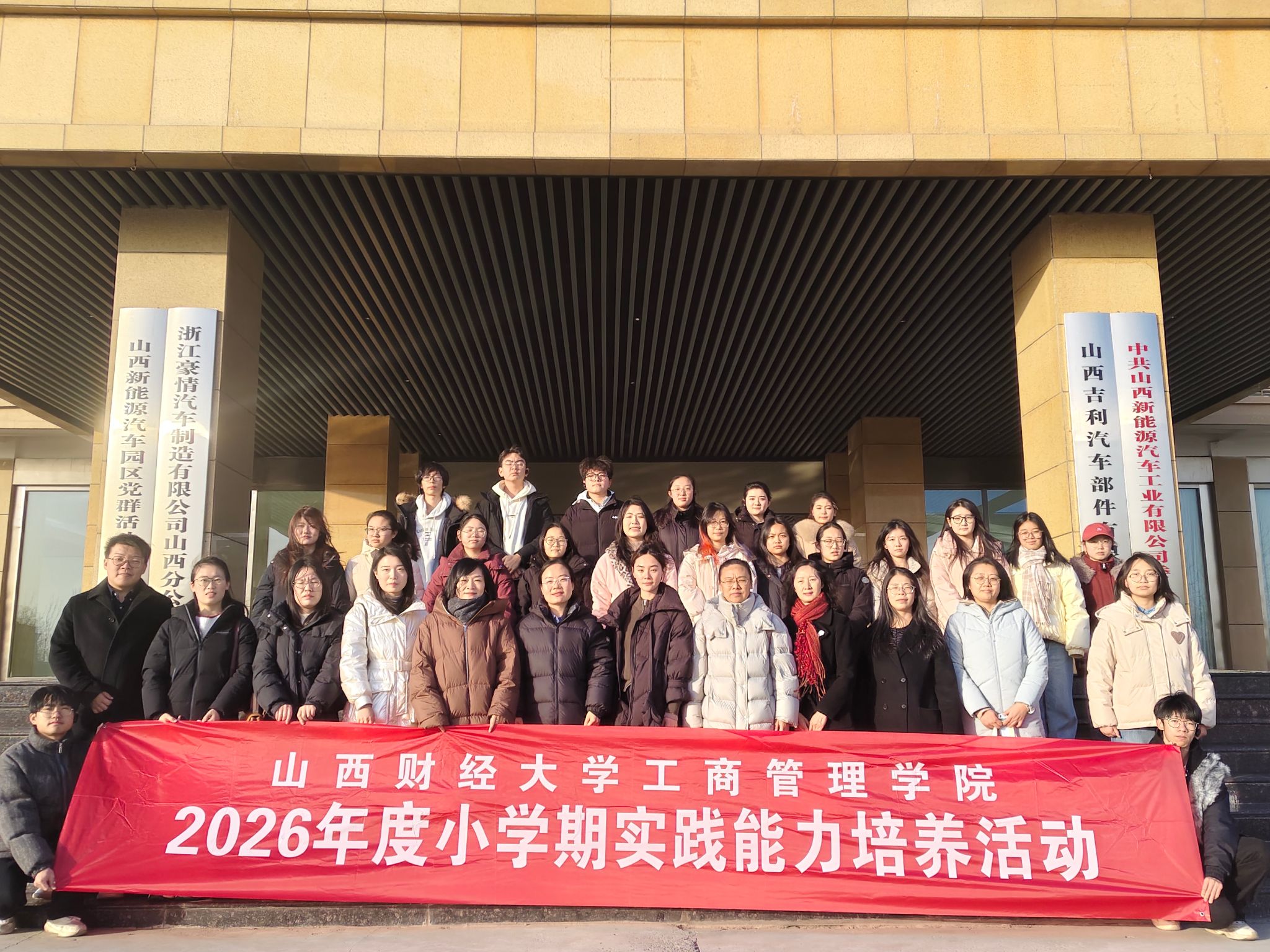 1月14日下午,我院工商管理专业2024级和2025级学生及部分教师由张莉艳老师带队,参观了山西吉利新能源汽车基地,了解企业生产经营、智能制造和技术创新等方面情况,此次“小学期”实践活动得到了公司的大力支持。