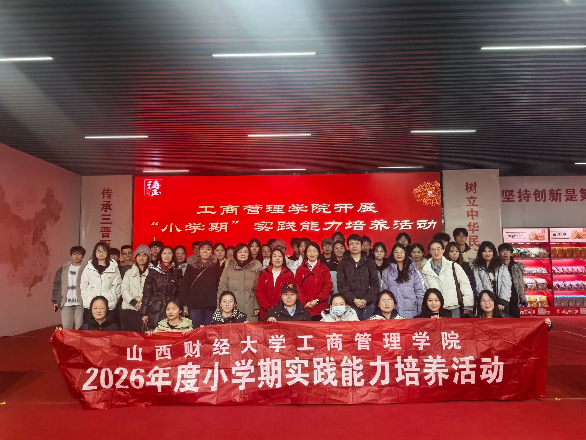 1月15日上午,我院工商管理专业2025级学生及部分教师由管理原理教研室主任张莉艳老师带队,参观了山西海玉园食品有限公司,此次“小学期”实践活动得到了公司的大力支持和热情接待。