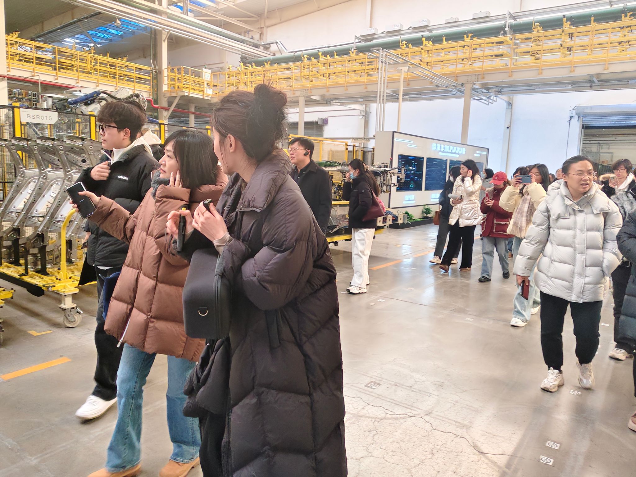 在山西吉利新能源汽车基地,师生们近距离感受现代智能制造的先进水平,近距离感受高精度制造与柔性生产的实际应用。在山西海玉园食品有限公司,师生们走进标准化生产车间与电商仓储,通过产品品鉴与座谈交流,深入理解了食品行业的智能化生产与产品创新逻辑。在山西数字化交通产业园,师生们实地观察物联网协同的钢材数字化加工全流程,直观体会智慧物流的闭环管理。在山西顺天立集团旗下的江药山西物流中心,师生们通过参观高标准冷库与自动化仓储系统,深入理解自动化物流在医药质量控制、效率提升与全程可追溯中的关键作用。